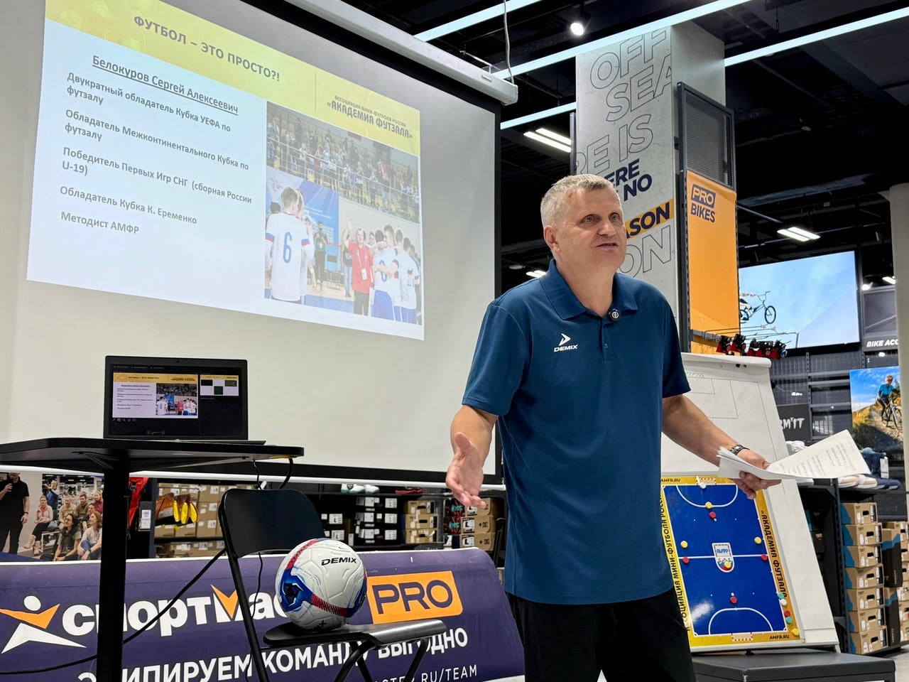 Раз в месяц, с сентября по март 2026 года, в магазине «СпортмастерPRO» на Варшавском шоссе в Москве двукратный обладатель Кубка УЕФА, методист Ассоциации мини-футбола России Сергей Белокуров будет делиться своим опытом по теме воспитания юных игроков в футболе и футзале. Курс лекционных занятий поможет наставникам более детально вникнуть в проблематику воспитания молодежи и подготовиться к тем сложностям, которые зачастую возникают в профессии.