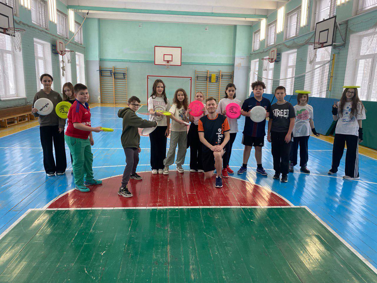 Ребята бросали, ловили диск, работали в парах. В конце урока играли в алтимат, пробовали силы в зонах нападения и защиты, показали точность броска и почувствовали поддержку игроков своей команды.