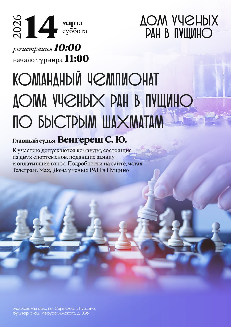 Командный чемпионат Дома учёных РАН в Пущино по быстрым шахматам – 2026